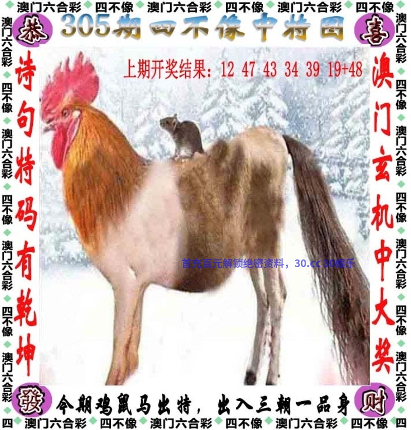 | 305期:【轻语解四不像】 【本期七肖】鸡鼠马猴狗兔牛 【本期四肖】鸡鼠马猴 |